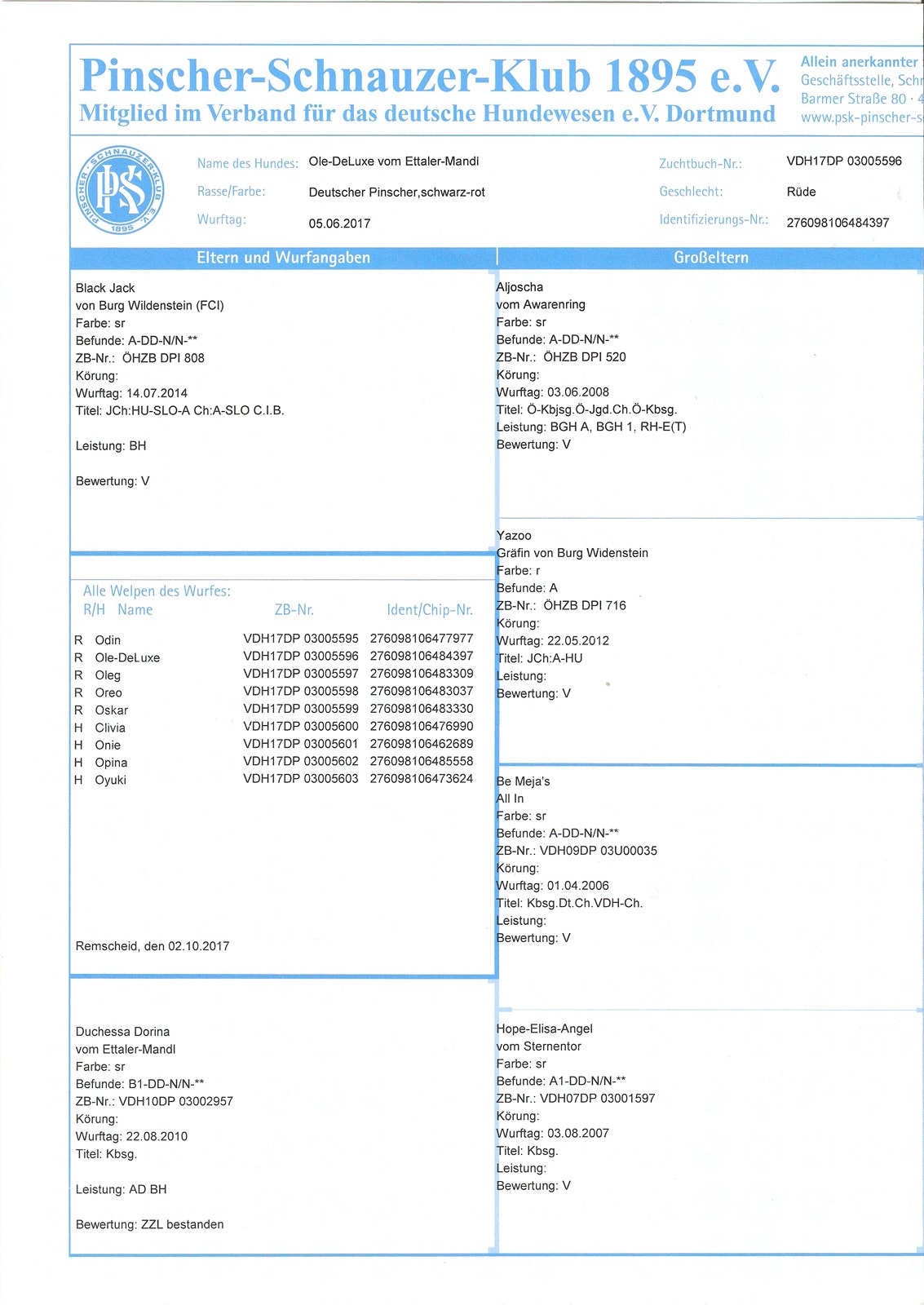 Wurftag / date of birth: 05.06.2017