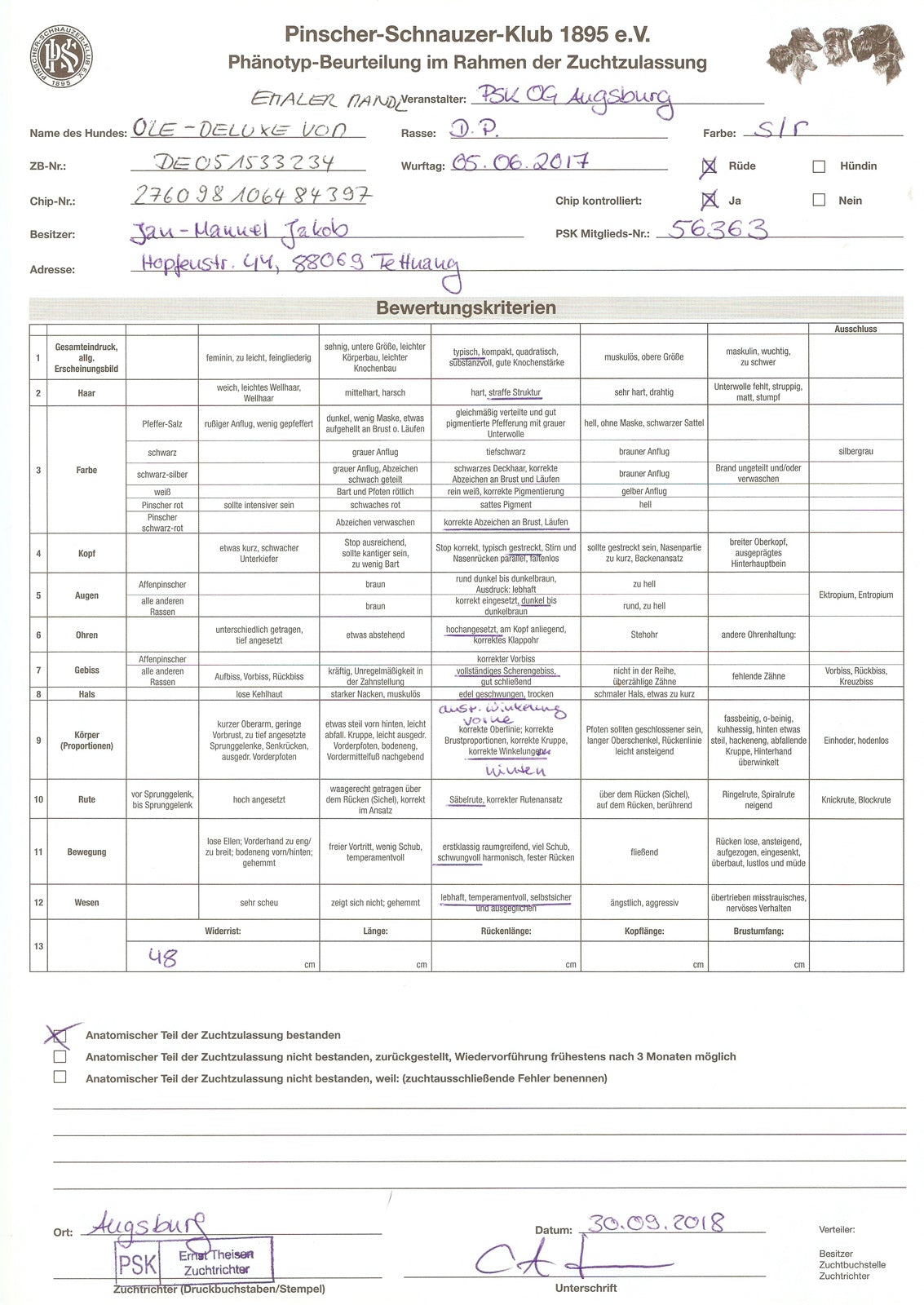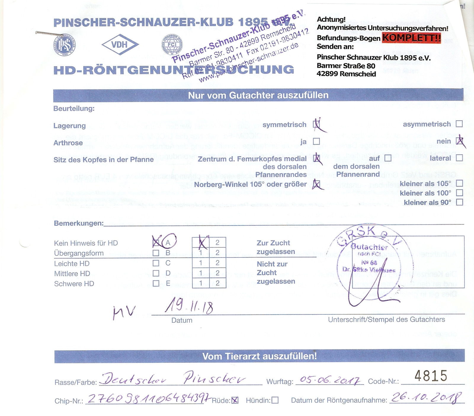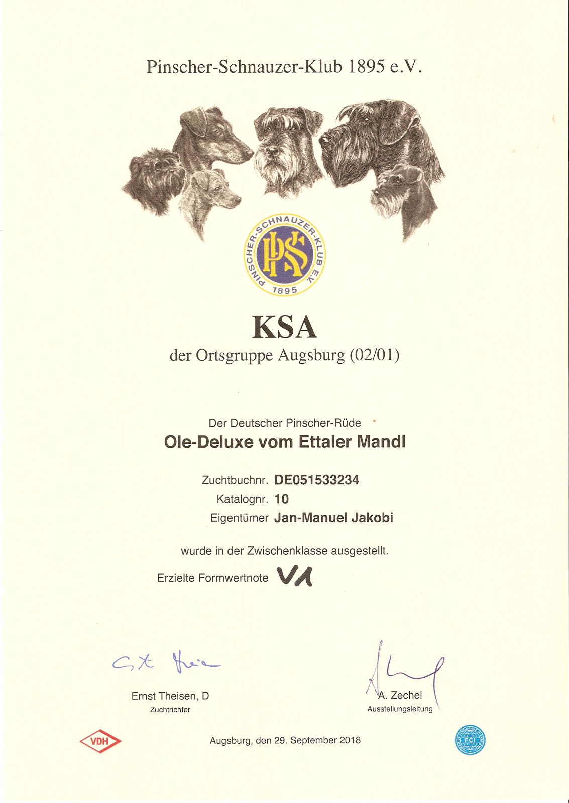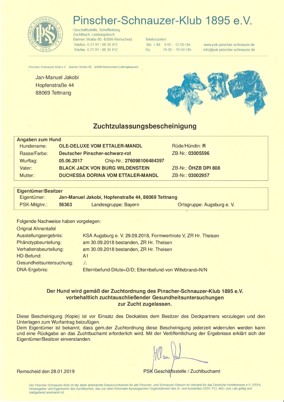 Zuchtzulassung / breeding confirmation: 28.01.2019