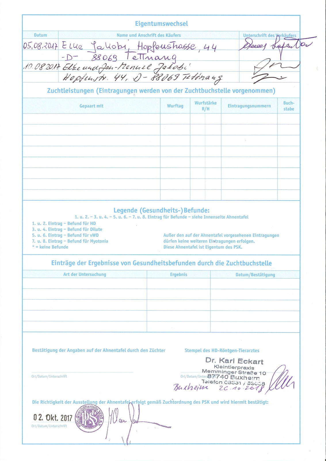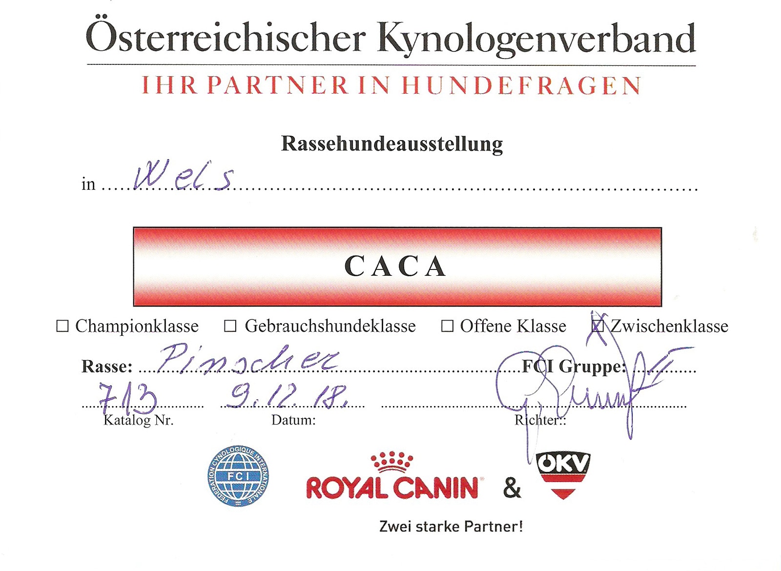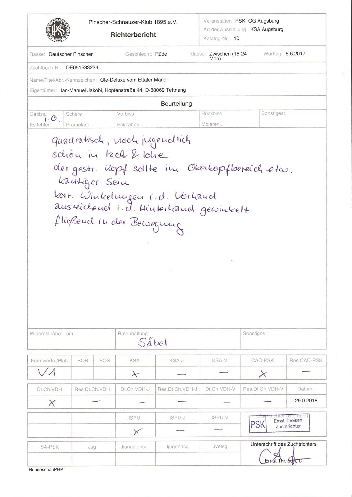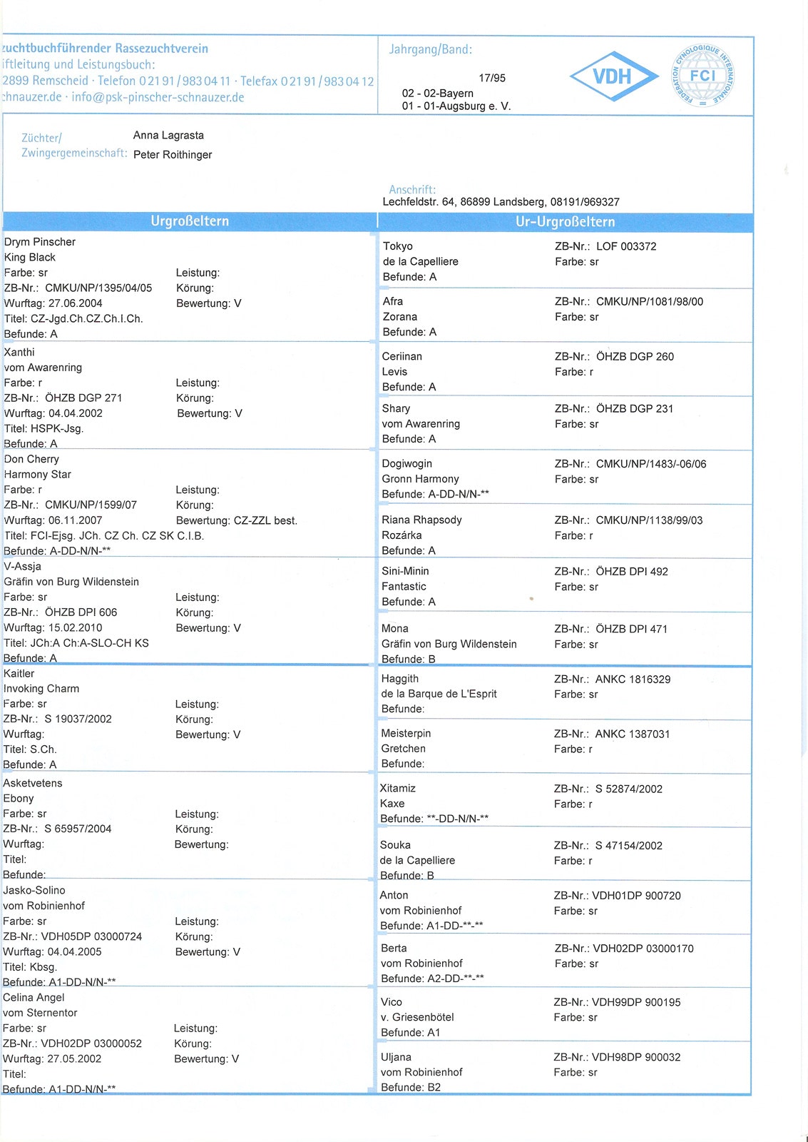 Zuchtzulassung / breeding confirmation: 28.01.2019