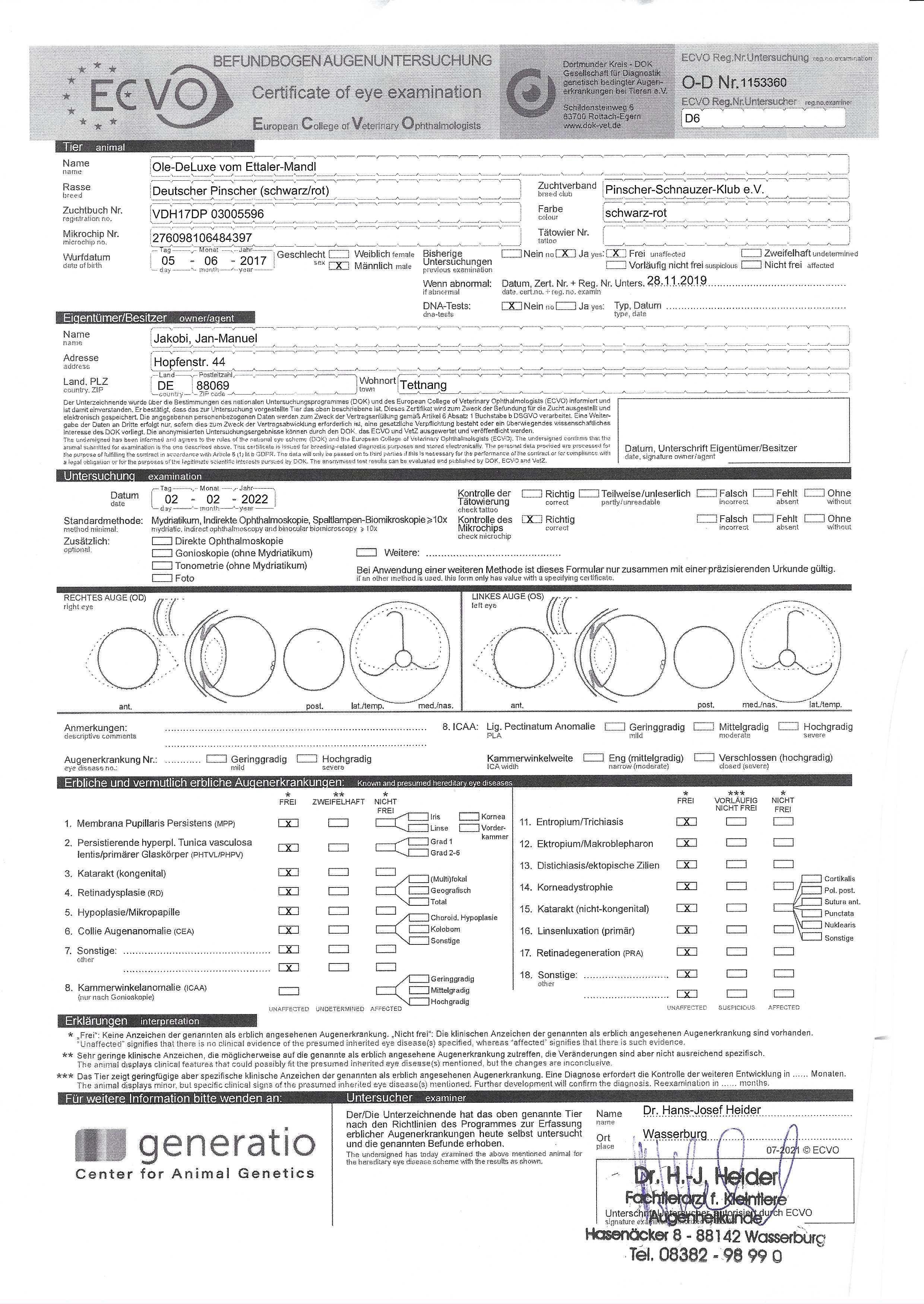 Augenuntersuchung / eyes: 02.02.2022 - frei für 1 Jahr / free